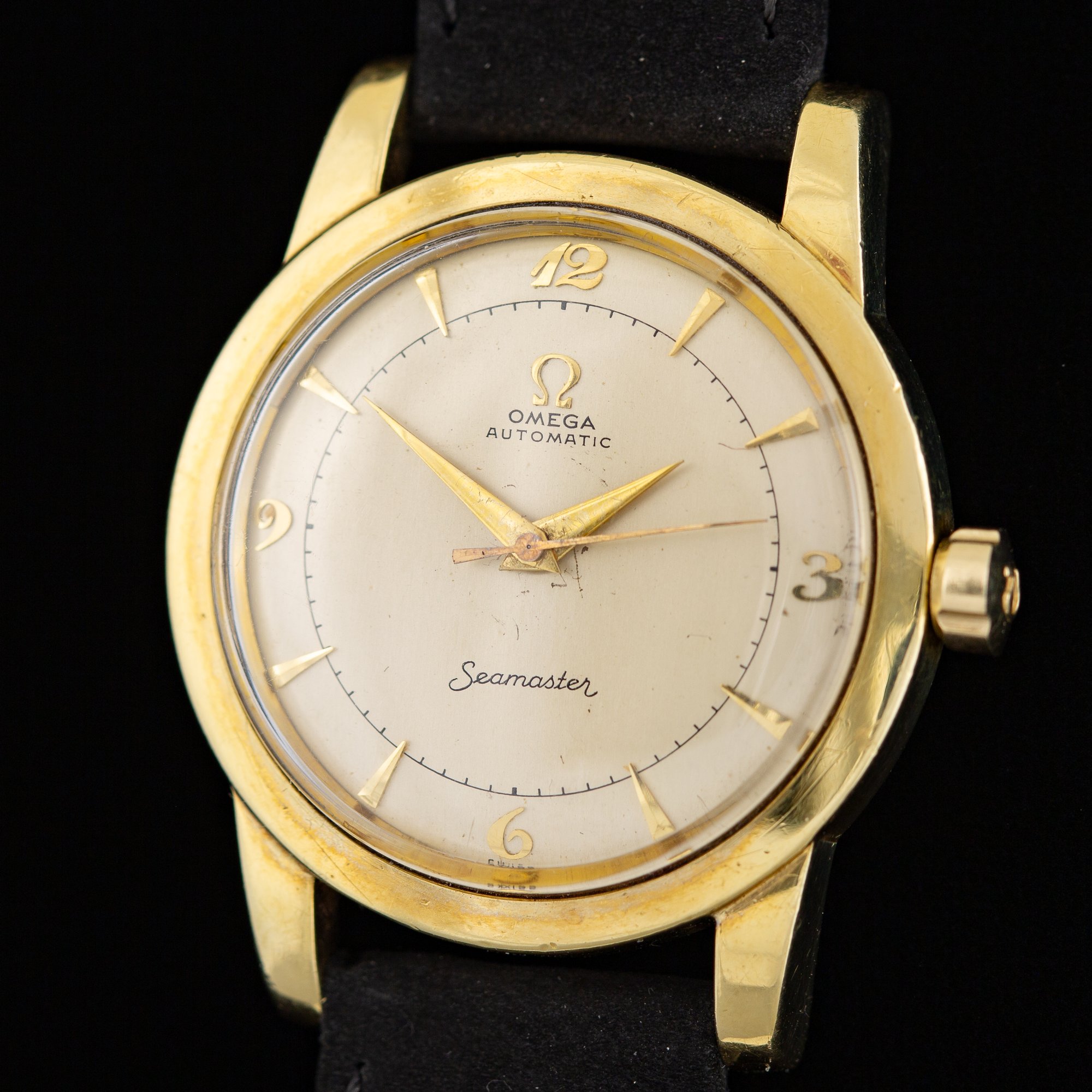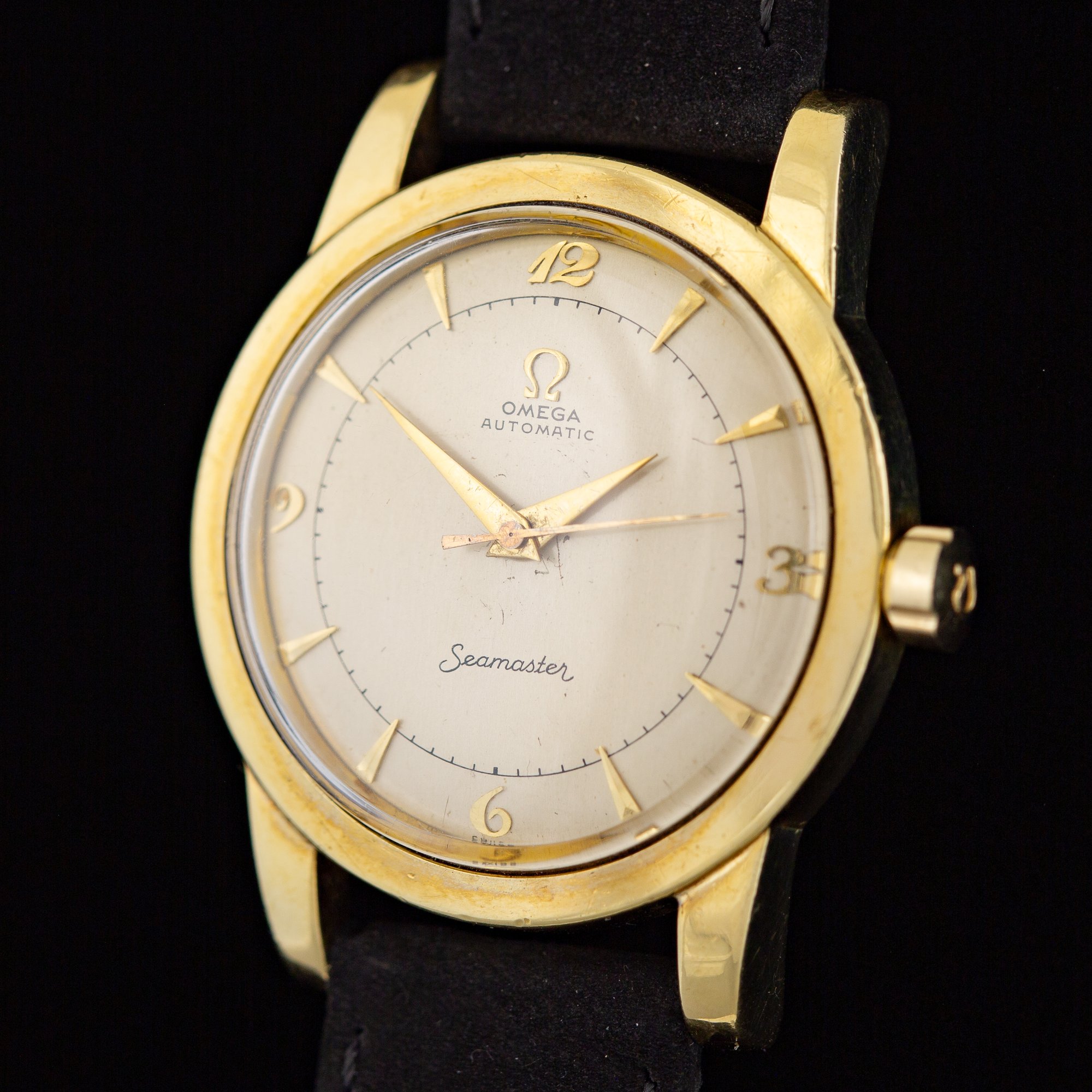 A circa 1952 Omega Seamaster Ref. 2577-19 SC from the post-war expansion of Omega’s automatic program, powered by the Caliber 354 bumper movement developed during the brand’s early self-winding era.