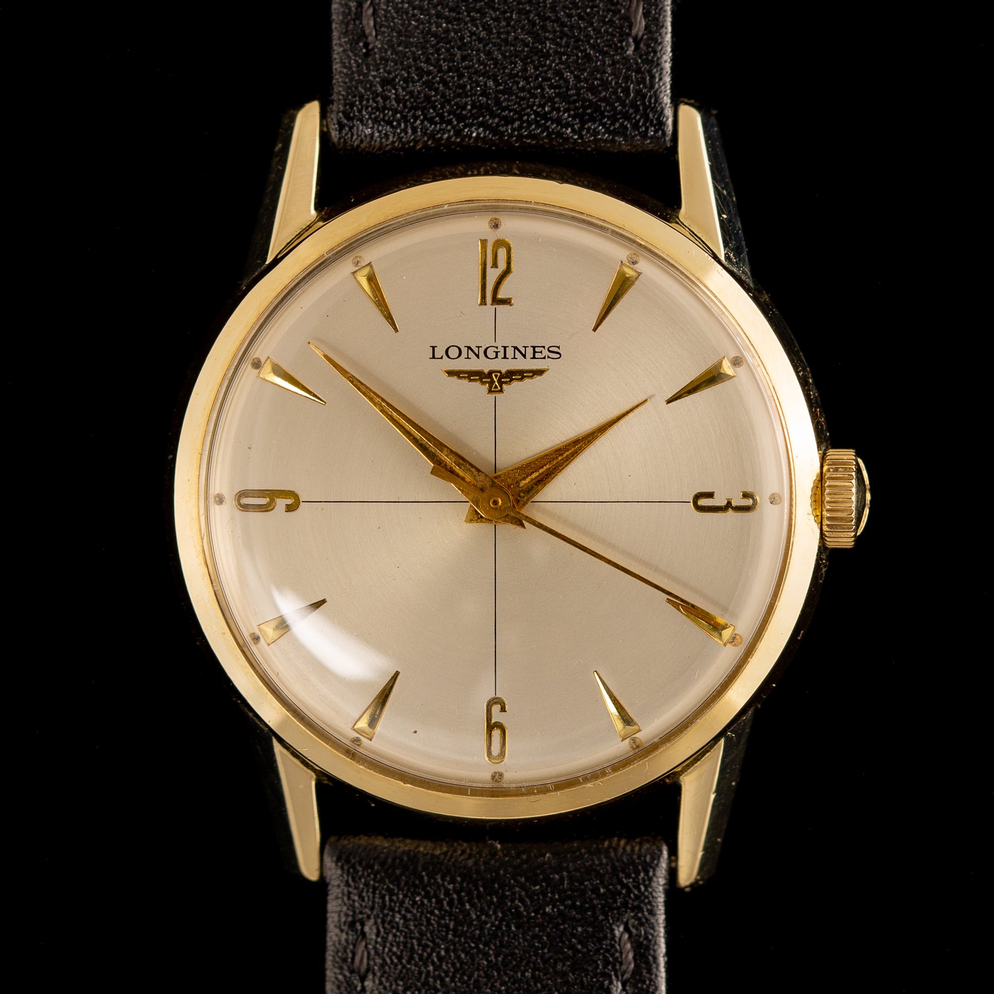 A 1957 Longines Ref. 2307 powered by the manual-wind Caliber 23ZS, showcasing a balanced mid-century design in a versatile 33mm case.