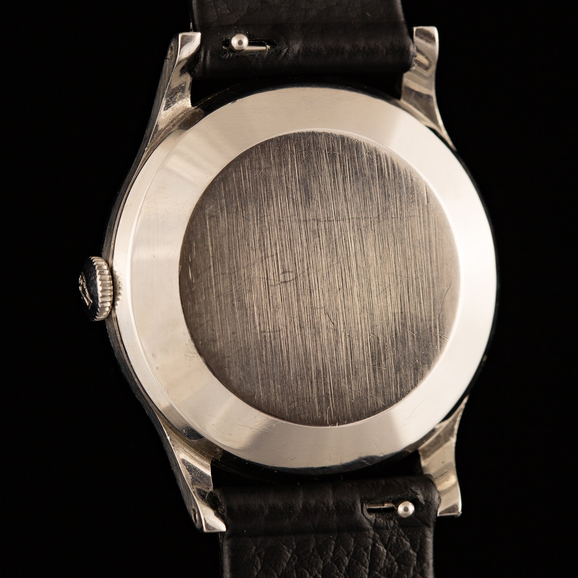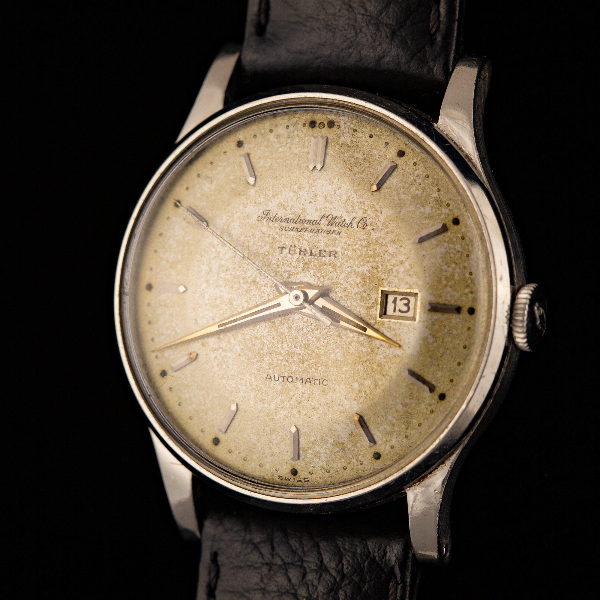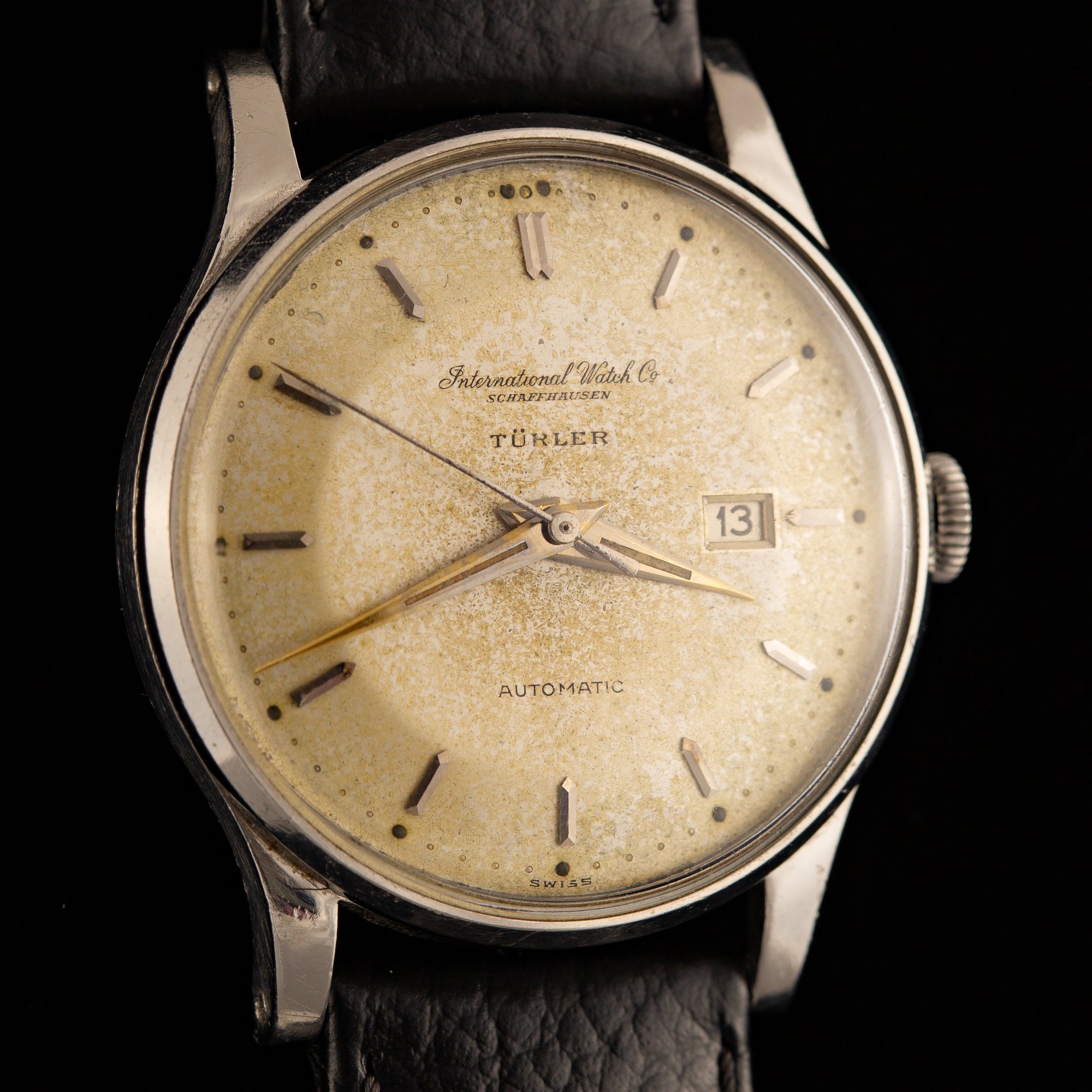 The Ref. 604 AD is double-signed, with the retailer signature of Türler of Zurich appearing beneath the IWC name. Türler was a long-standing IWC authorized dealer and one of Switzerland's most respected jewelers. Retailer-signed dials from this period are increasingly scarce.