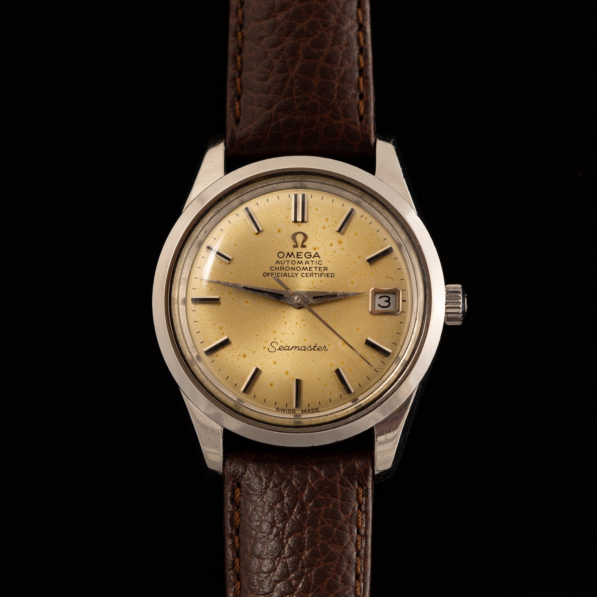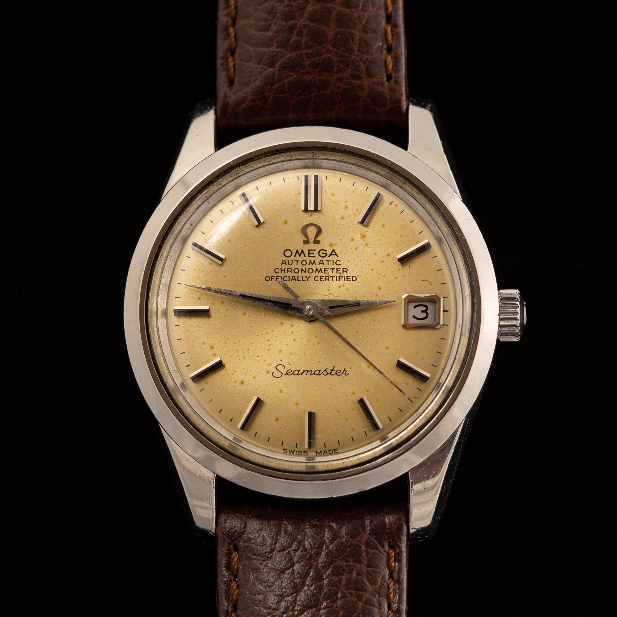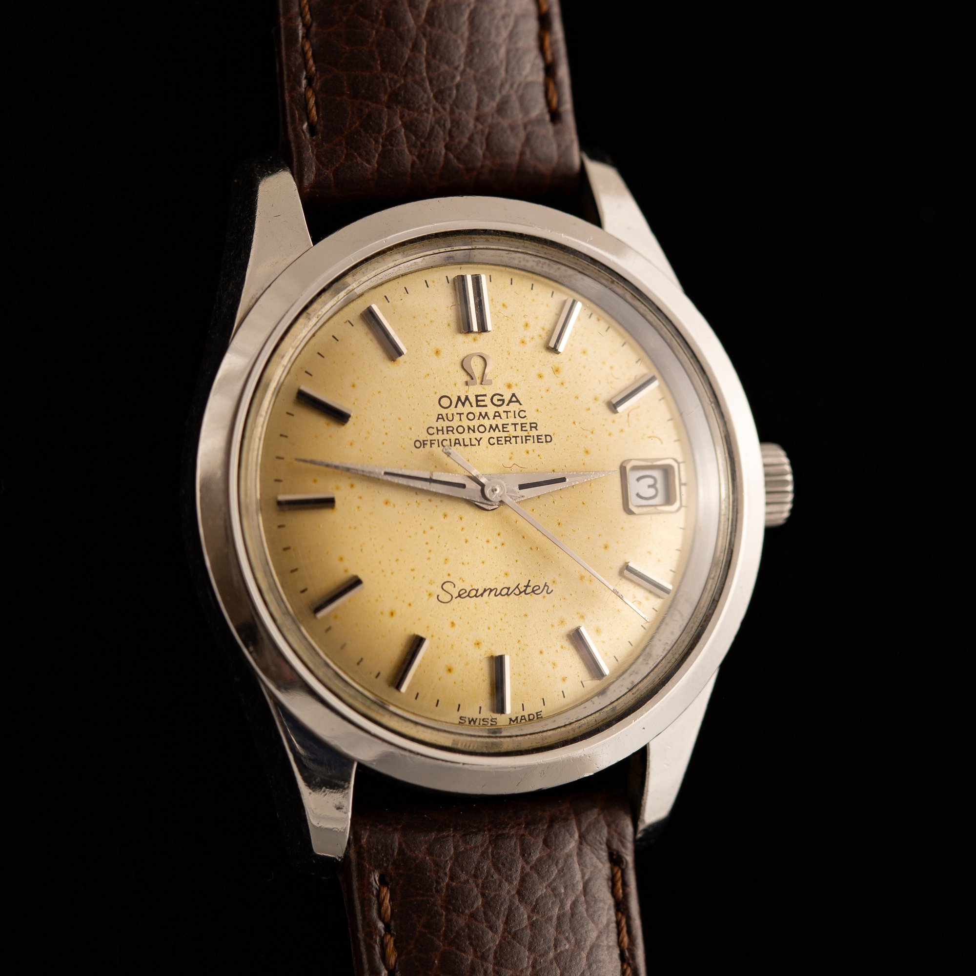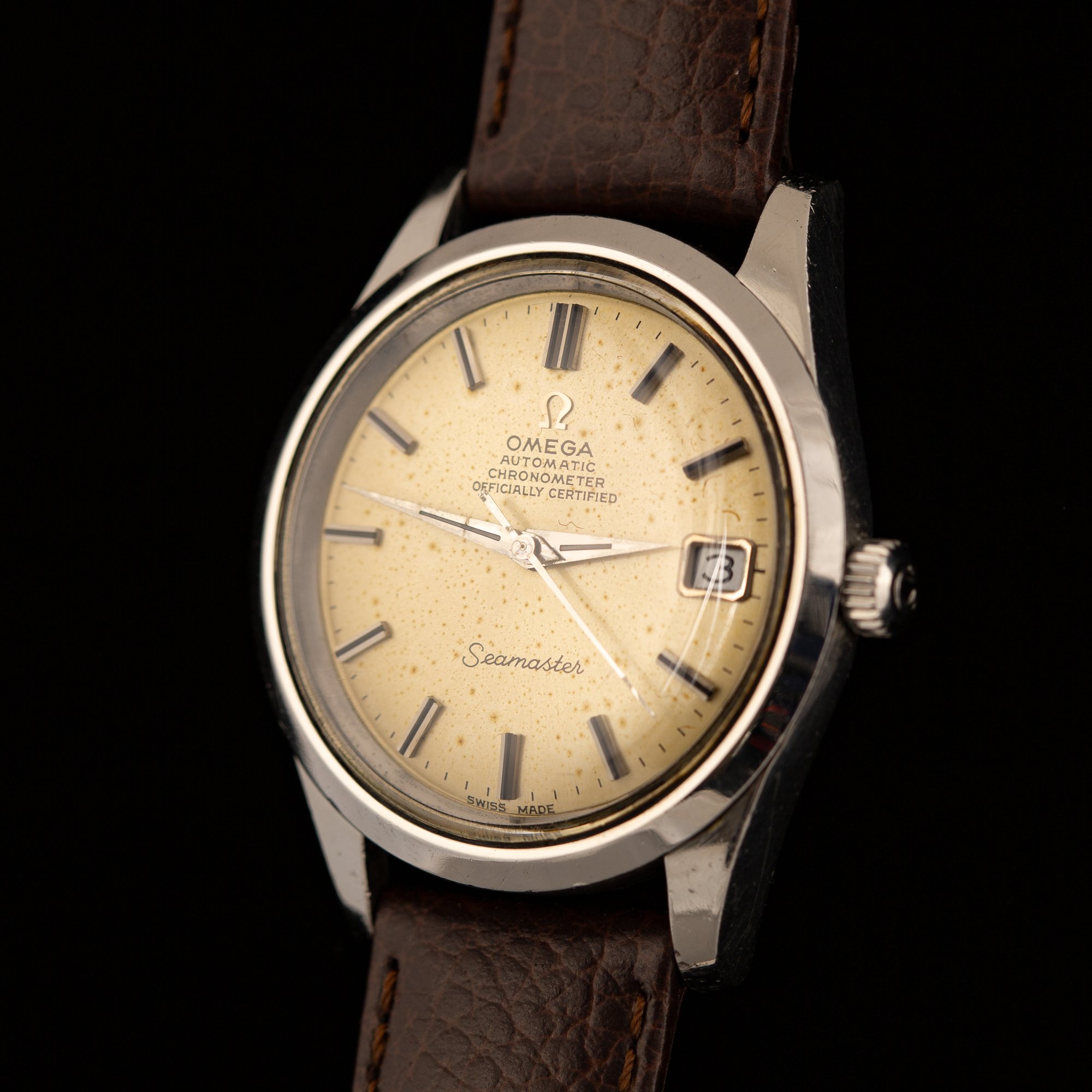 A 1969 Omega Seamaster Ref. 168.024 from the late 1960s, powered by the chronometer-grade Caliber 564, one of Omega’s best movements of the period.